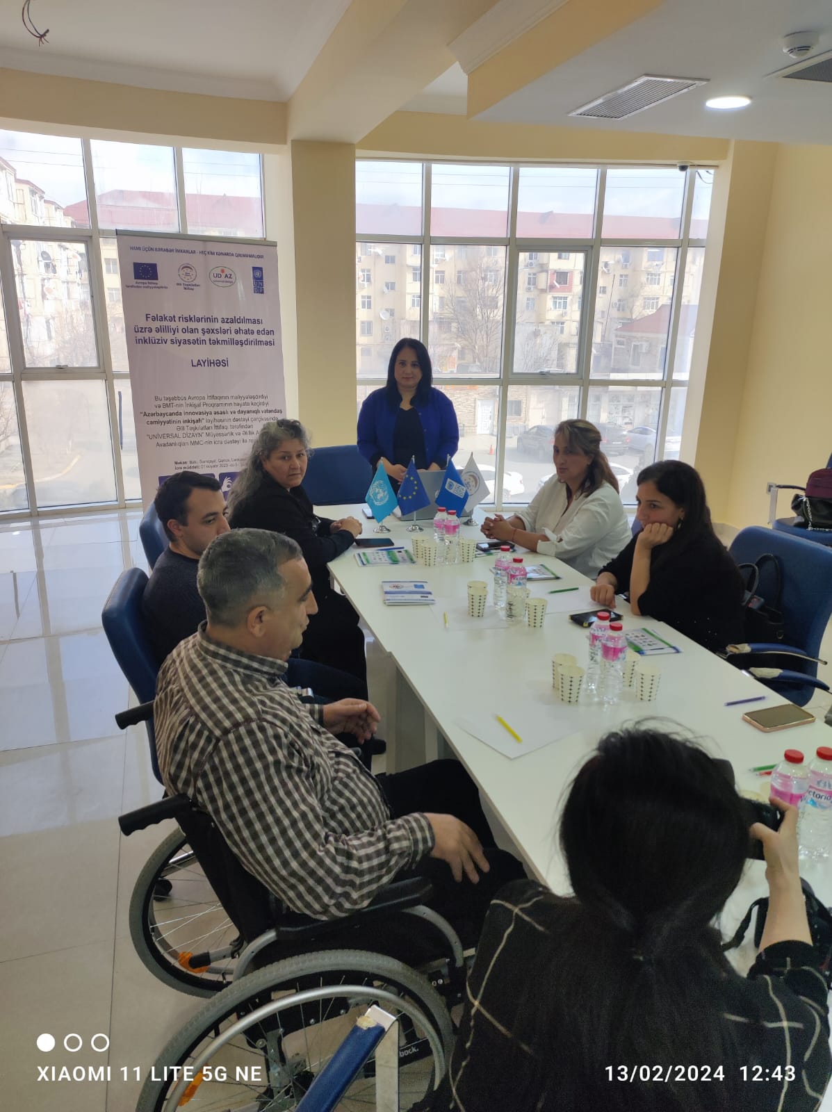 - 13/2/2024 “Fəlakət risklərinin azaldılması üzrə əlilliyi olan şəxsləri əhatə edən inklüziv siyasətlərin təkminləşdirilməsi” layihəsi üzrə əlilliyin olan şəxslər ilə fokus qrup keçirib.